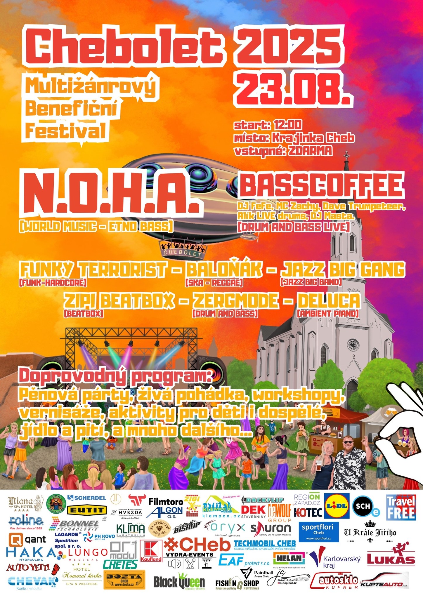Tradiční multižánrový festival Chebolet, který pořádá chebský spolek Gurmánství, se bude na Krajince pod hradem konat v sobotu 23. srpna od 12:00.
