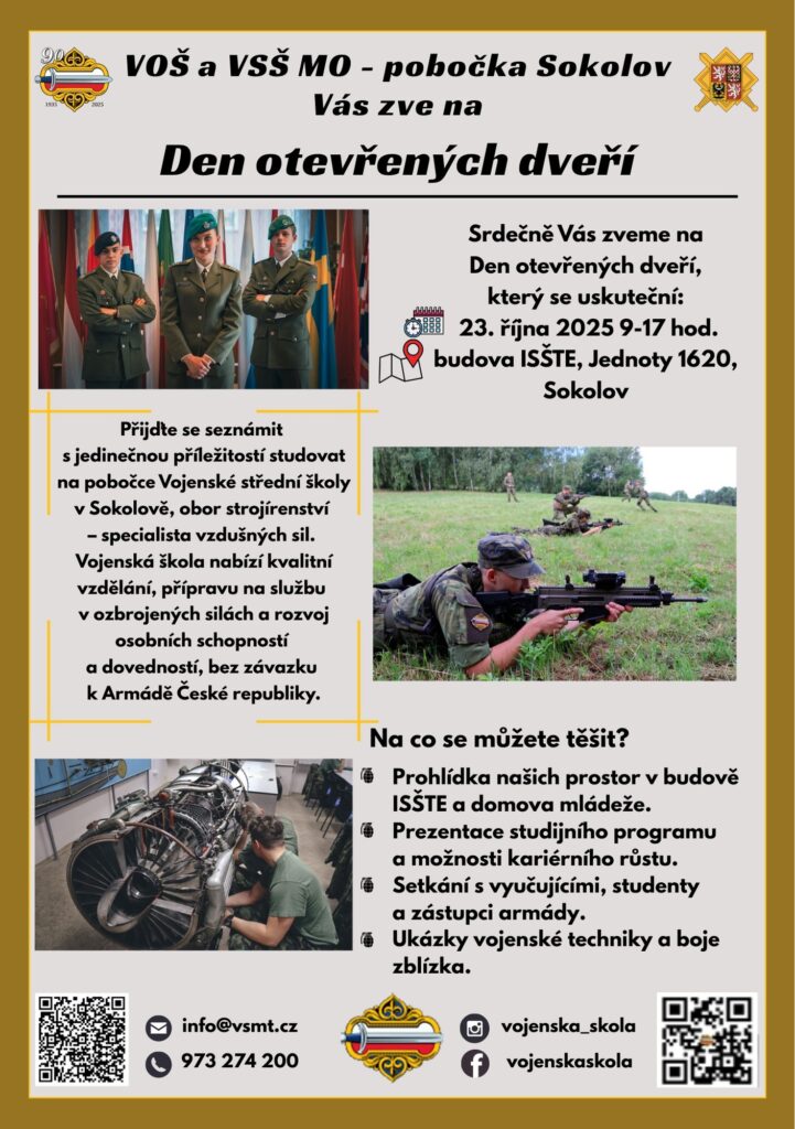Do zajímavé nabídky středních škol v našem kraji patří i Vojenská střední škola a vyšší odborná škola Ministerstva obrany v Sokolově. A pokud někdo zvažuje právě tuhle školu, udělat si představu a takzvaně si na školu sáhnout můžete již 23. října mezi 9 – 17 hodin. Školu v tento den poznáte snadno podle vojenské techniky. […]